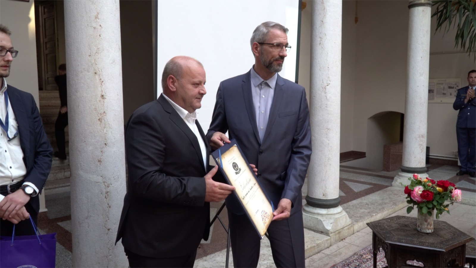 Posjeta je završena druženjem u Malom atriju Fakulteta, tokom kojeg je vojni muftija Hadis ef. Pašalić uručio Zahvalnicu dekanu Fakulteta za dugogodišnju uspješnu i kvalitetnu saradnju.